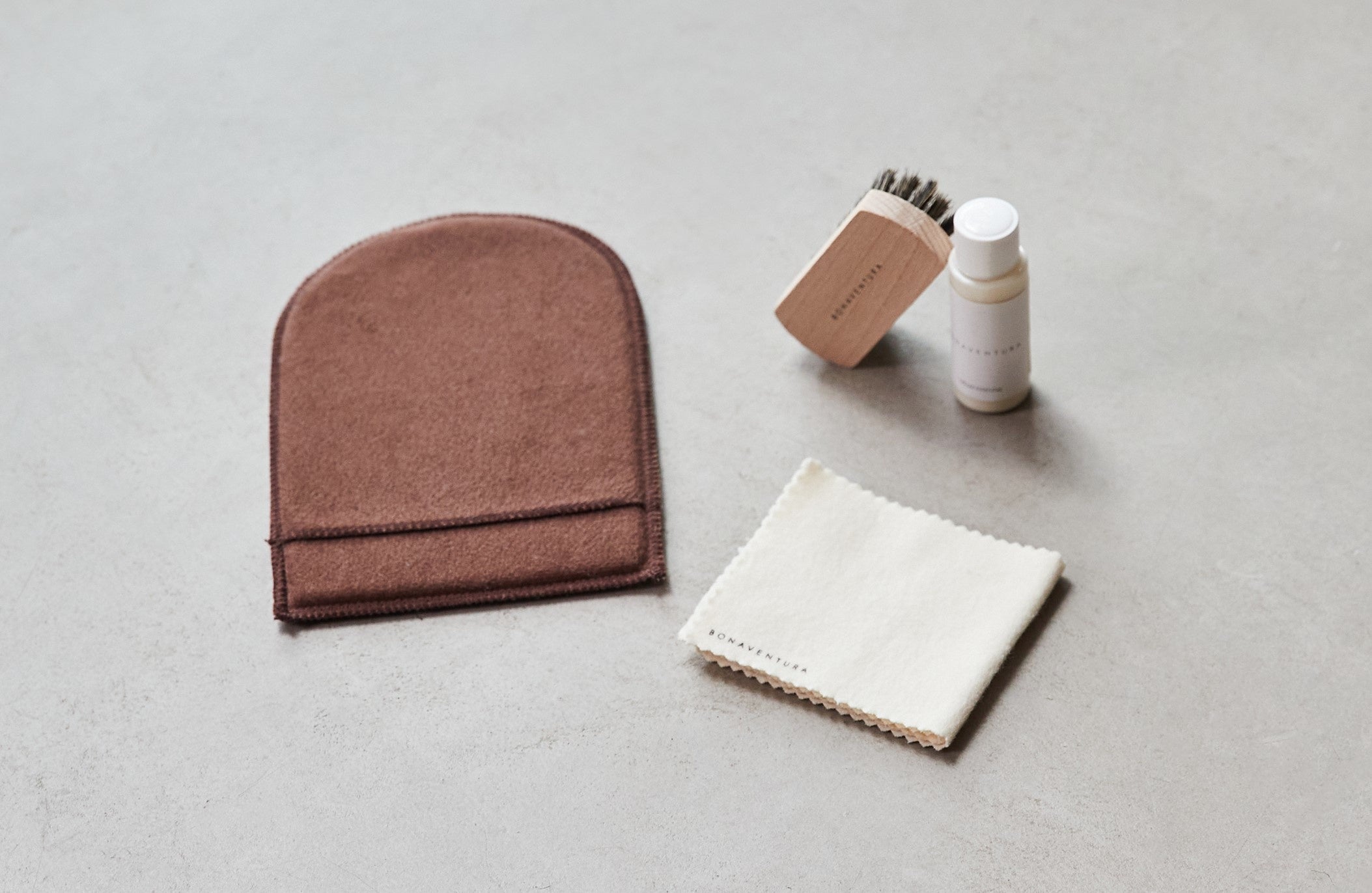 BONAVENTURAのレザーケアキットは、旅行や出張にも重宝するコンパクトなサイズ感。