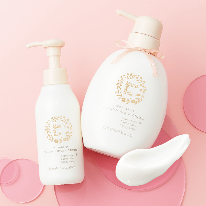 妊娠中から産後まで使えるボディケア。無香料・無着色・低刺激処方でデリケートな時期に安心してお使いいただけます。特に人気の「ママ&キッズ ナチュラルマーククリーム」は美容成分たっぷりの美容液と美容オイルからできた高保湿クリームタイプのボディケアクリーム。妊娠中の乾燥しやすいボディをしっとり整え、一気に大きくなるおなかに備えて肌をやわらかくします。