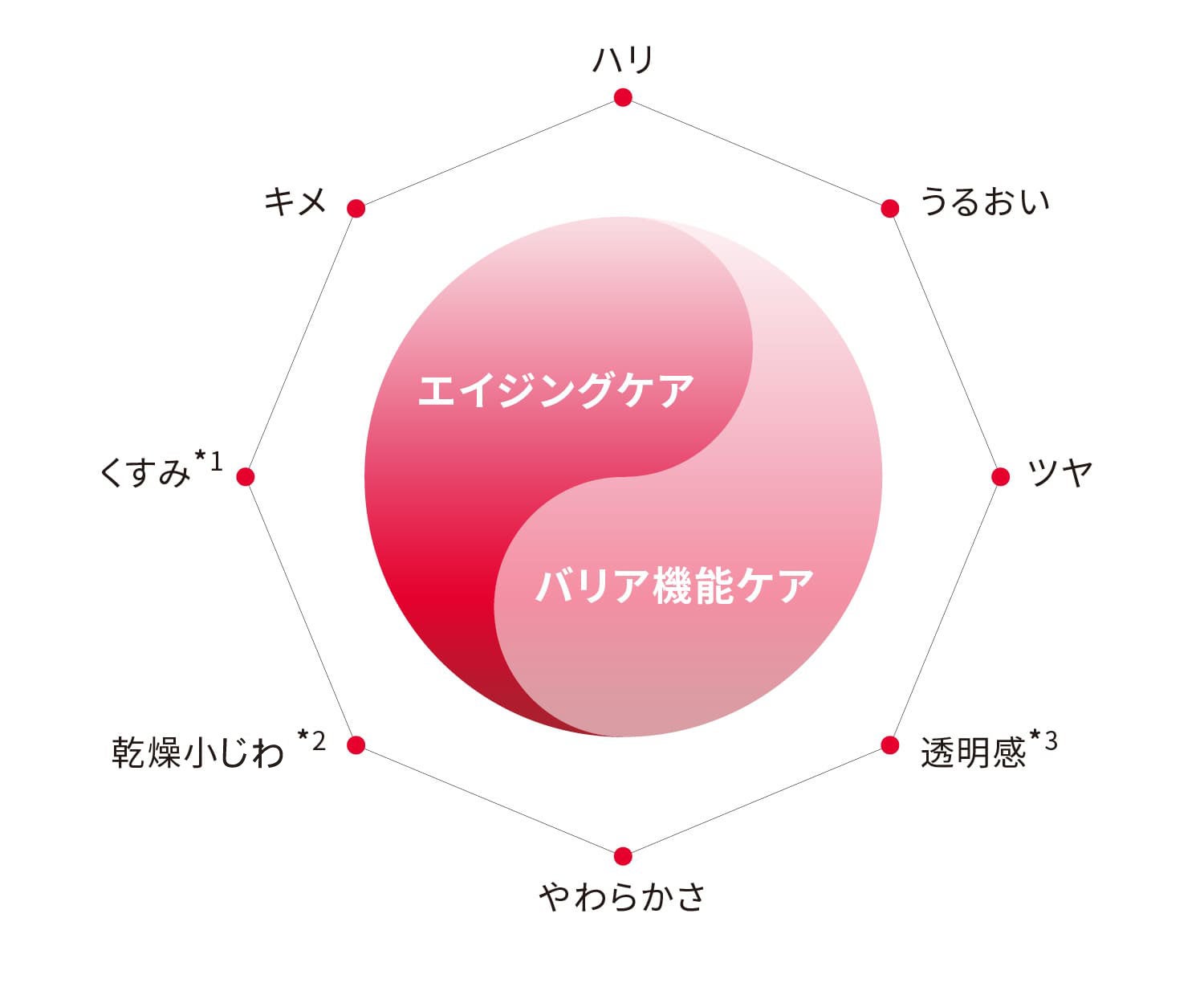 *年齢に応じたお手入れのこと *1 乾燥による *2乾燥による小ジワを目立たなくする *3 肌がうるおいキメがととのっていること
