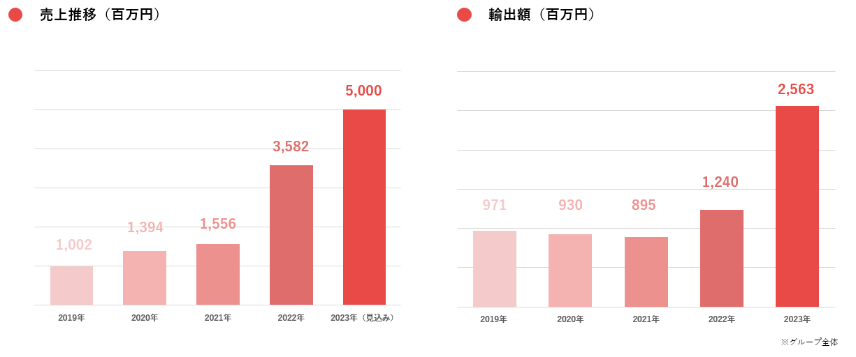 2022年には、前年比230%の成長率でグループ全体の売上高は35億円となりました。2023年は売上高50億円を見込み、りんごをはじめとした日本産農作物の輸出額が25億円を超えました。日本農業が2016年に参入してから、りんごの輸出の全体額は1.5倍になりました。