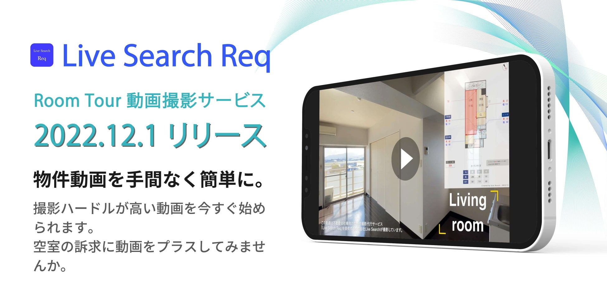 株式会社Live Search(福岡県福岡市中央区、代表取締役 福井隆太郎)は、不動産会社様向けに物件撮影・間取り図作成代行サービス「Req(レック)」や物件写真・間取り図をダウンロードできる物件データベース「Stockplace(ストックプレイス)」を展開しています。2022年12月1日より、「Req(レック)」にて動画撮影代行プランの提供を開始することが決定いたしましたので、お知らせします。