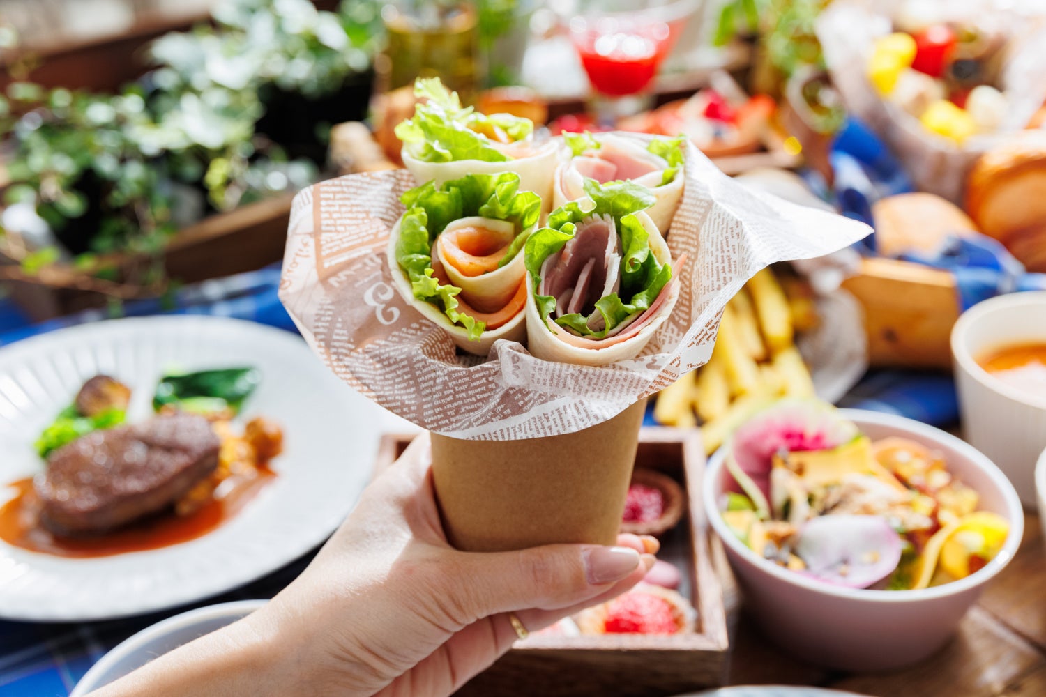ランチメニューは、目にも楽しいピンチョス、ジャンボブラン・スモークサーモンとチーズを贅沢に味わえるロールサンド、未利用魚などを使った具だくさんな食べるスープ4種、選べるメインディッシュなど、兵庫県産の食材を中心にサスティナブルメニューも取り入れた料理の数々をご用意しました。大人がワクワクするような、エシカルなラインナップです。