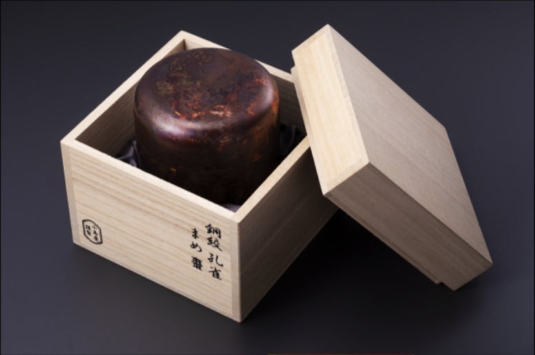 重厚感のある素材と伝統工芸職人の技の詰まった、小島屋自称「世界最高のナッツ入れ」まめ棗。その価格は100,000円(本体価格)となっています。