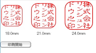 画面上部の「印刷用画面出力」ボタンをクリックすると、印鑑の定型サイズが各種表示されます。