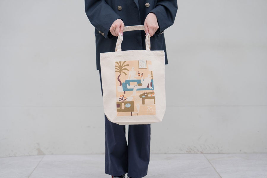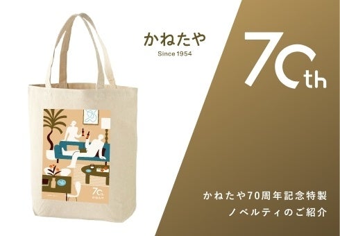 11月からかねたや各店・イベント会場及びかねたやオンラインにて3万円以上(税込)お買い上げの方に、かねたや70周年を記念したオリジナルイラスト付きトートバック(厚地キャンバス)をプレゼントいたします。