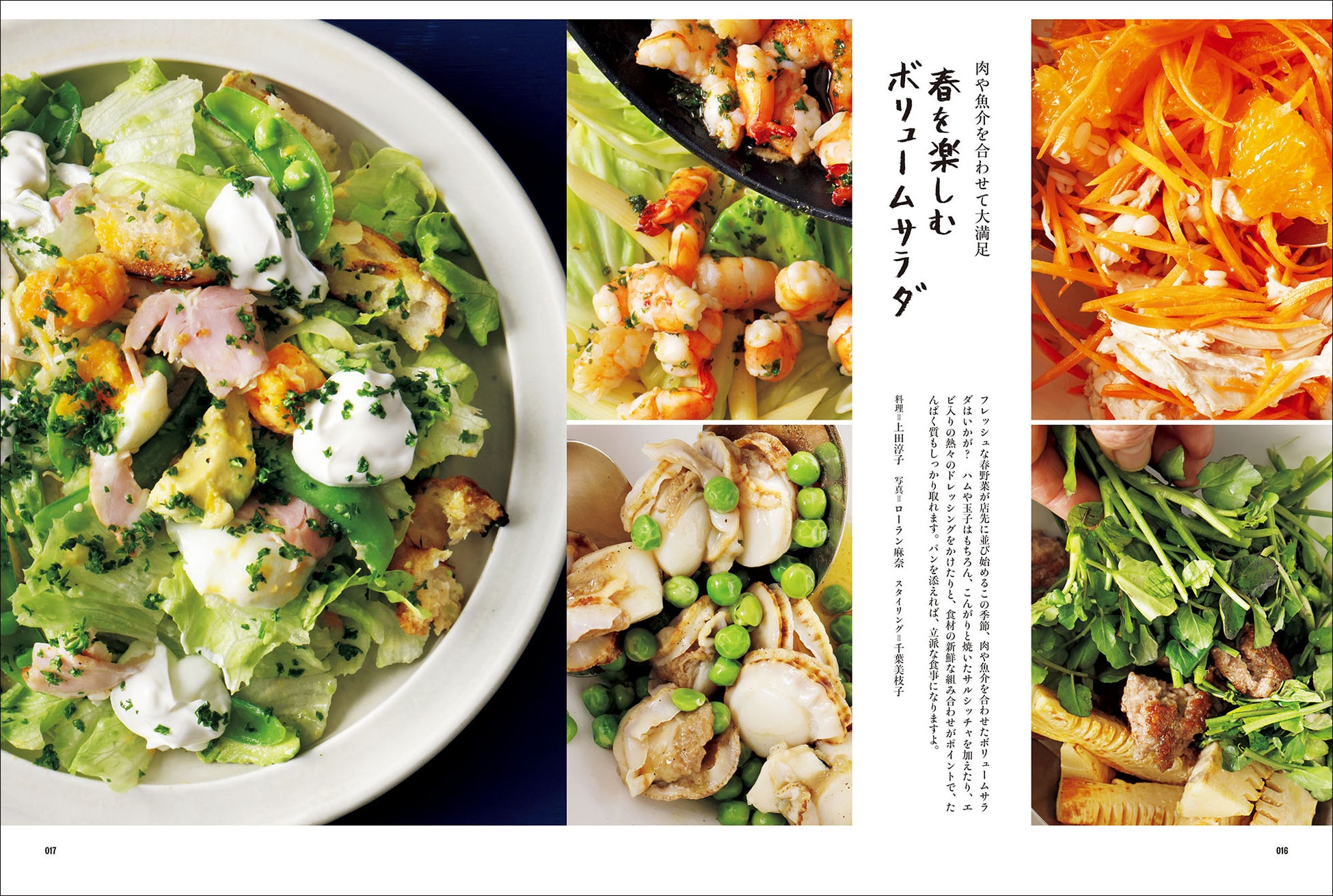 春野菜に魚介やお肉を合わせ、ひと皿で栄養もお腹も満たされる「春を楽しむボリュームサラダ」など、本号は料理記事が大充実。