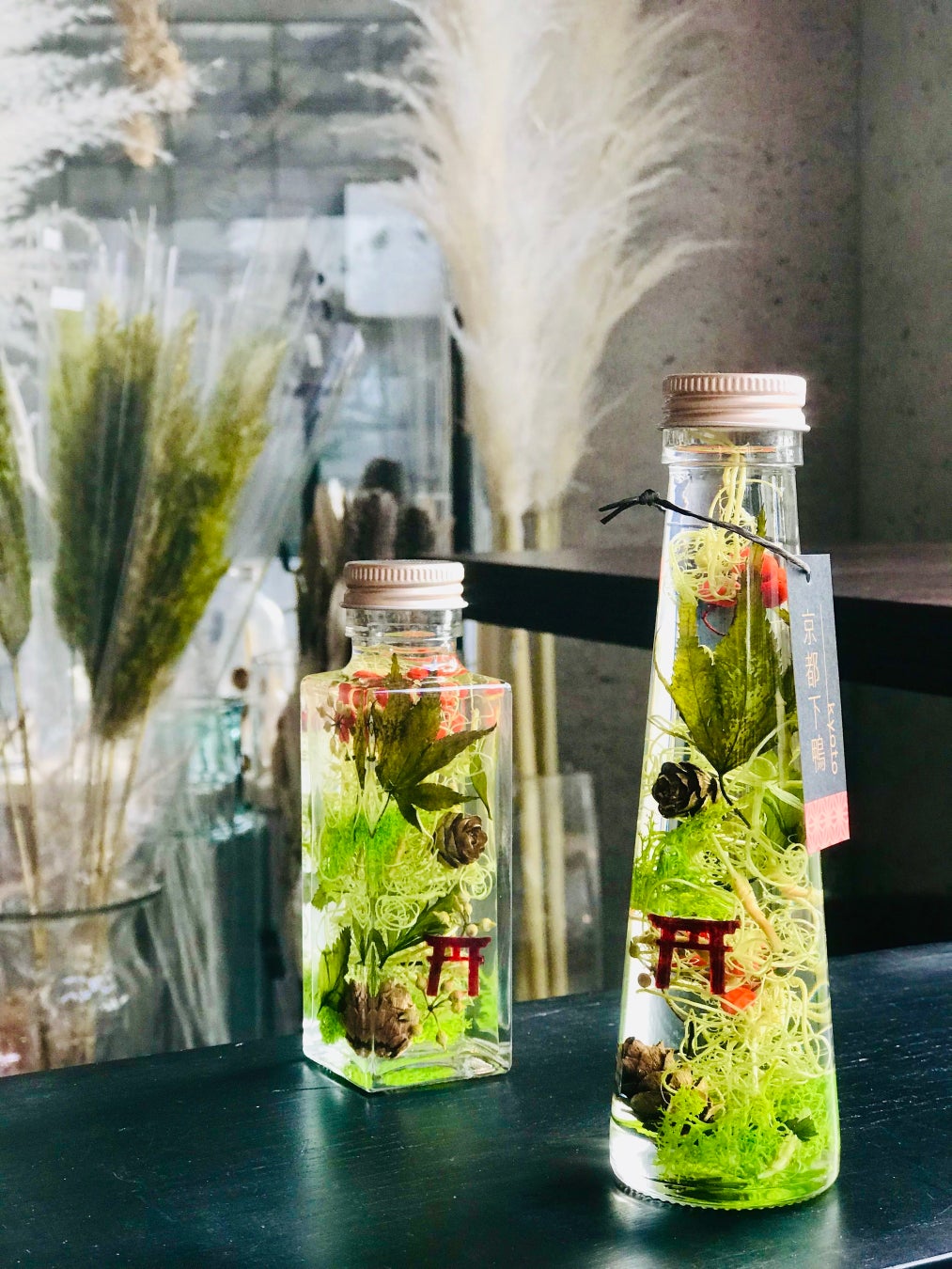 【商品内容】 京風ハーバリウムづくり体験+わらび餅ラテ 黒蜜抹茶か黒蜜ほうじ茶