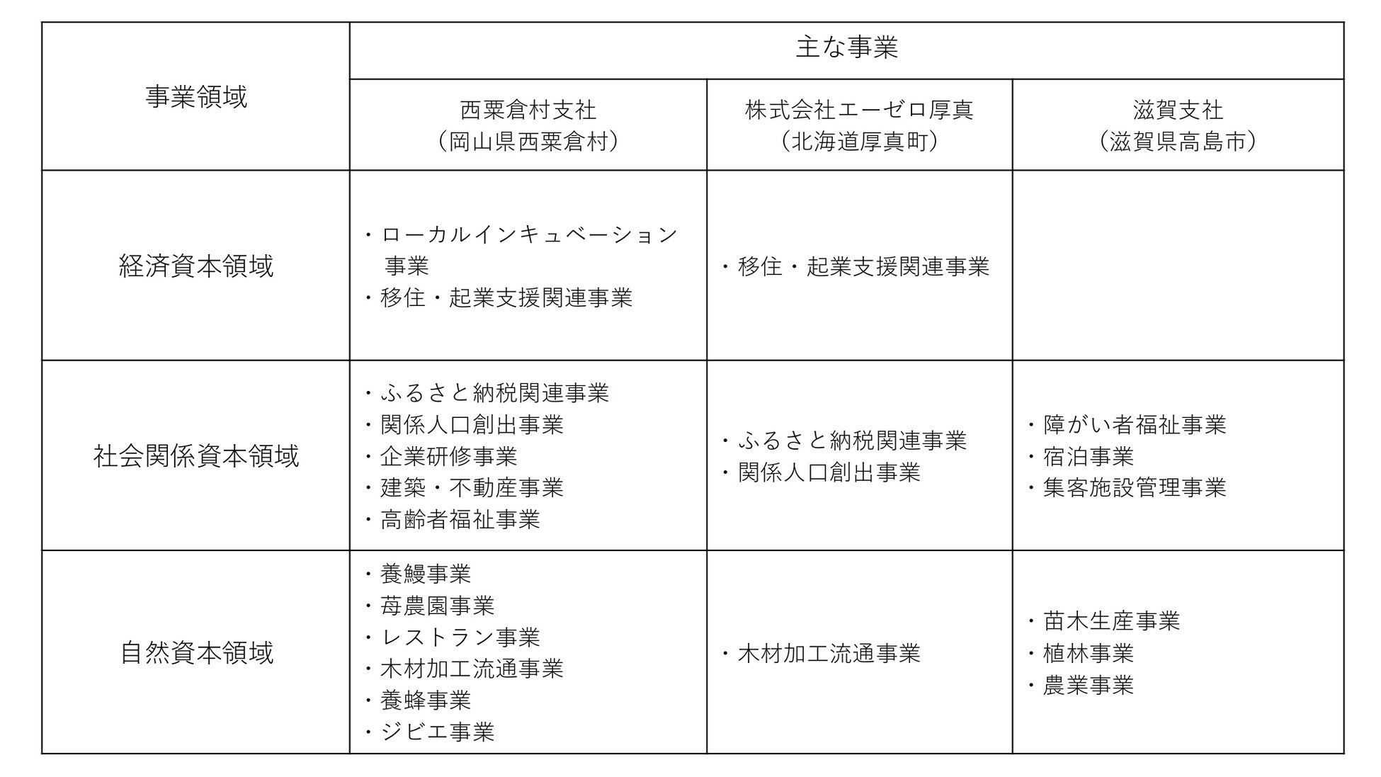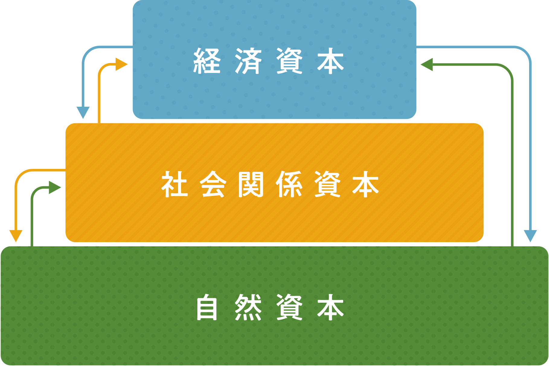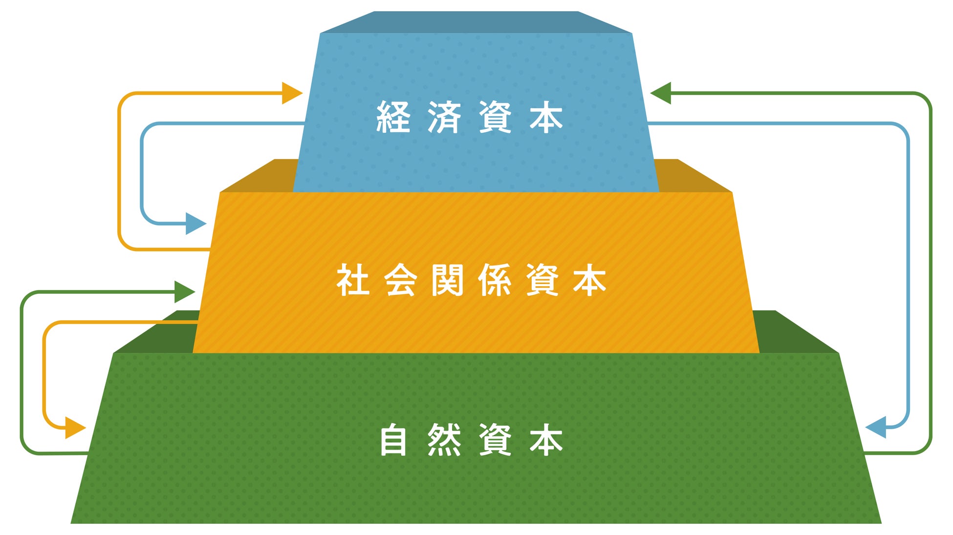 事業領域は自然資本領域、社会関係資本領域、経済資本領域の3つを設定しております。