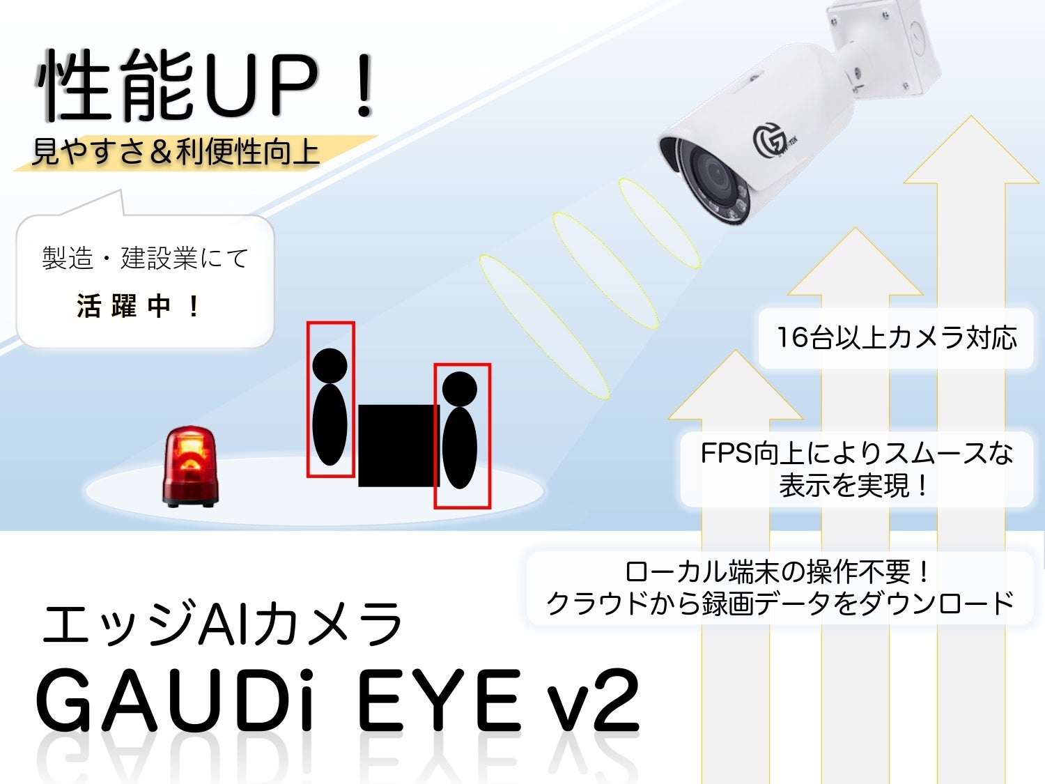 エッジAIカメラ「GAUDi EYE(ガウディアイ)」v2へアップデート!カメラ接続台数最大36台など性能と利便性が向上:展示会(名古屋 ものづくり AI/IoT展)へ出展