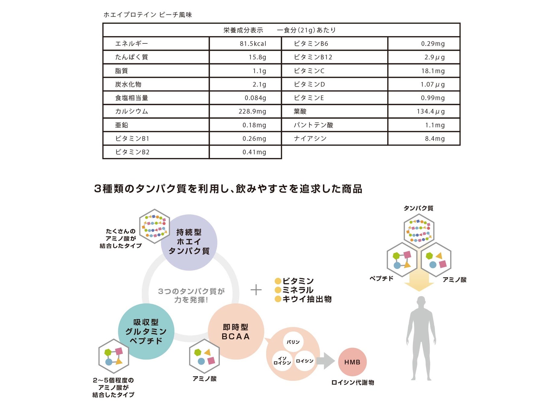 カラダづくりにとって有効な成分「ホエイプロテイン」「グルタミンペプチド」「B C A A 」を