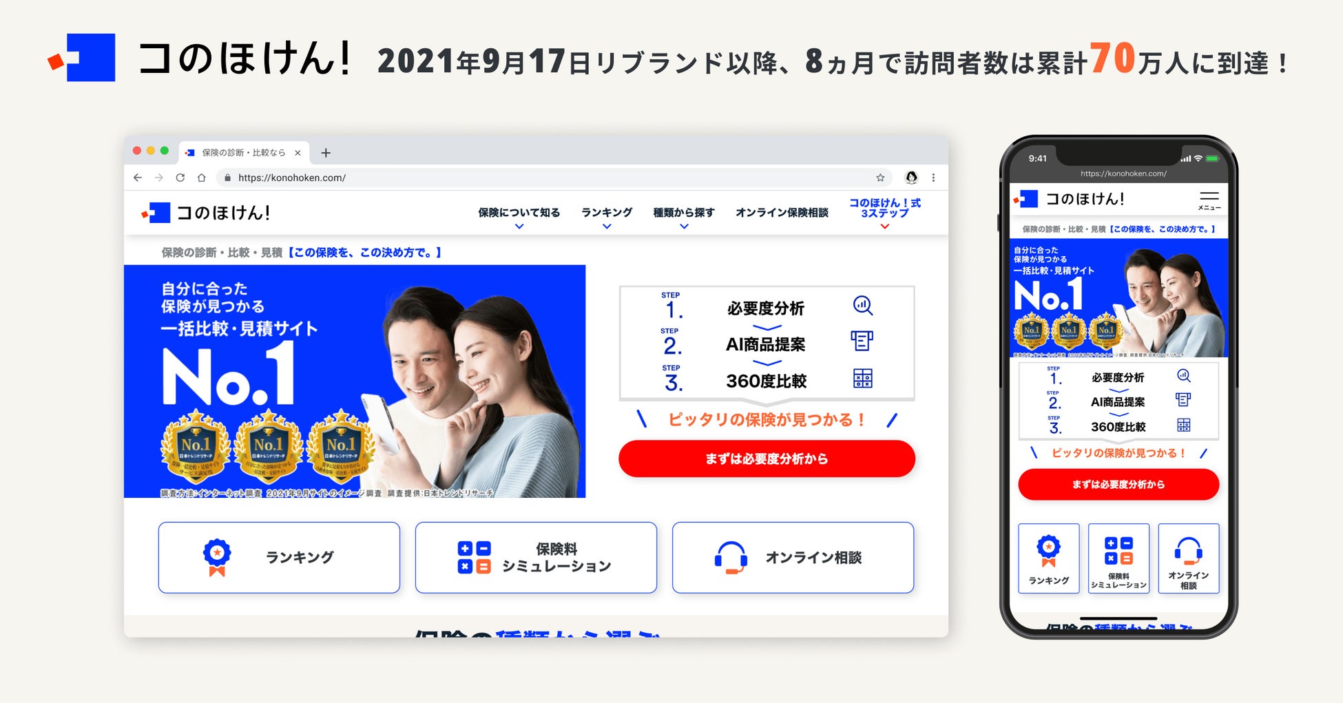 月間訪問者数10万人を突破!保険の診断・一括比較・見積もりサイト「コのほけん!」