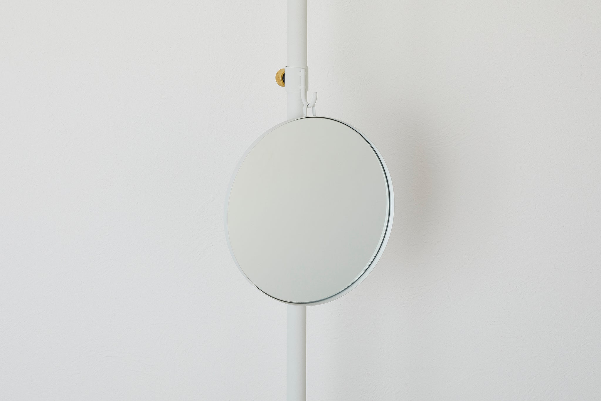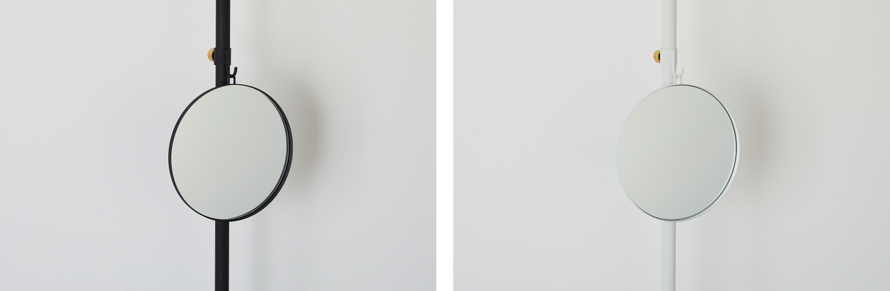 付属のHookの位置を変えれば、好きな高さにMirrorを設置することができます。目線の高さに合わせて設置すれば自然な姿勢でメイクするときも美しく。