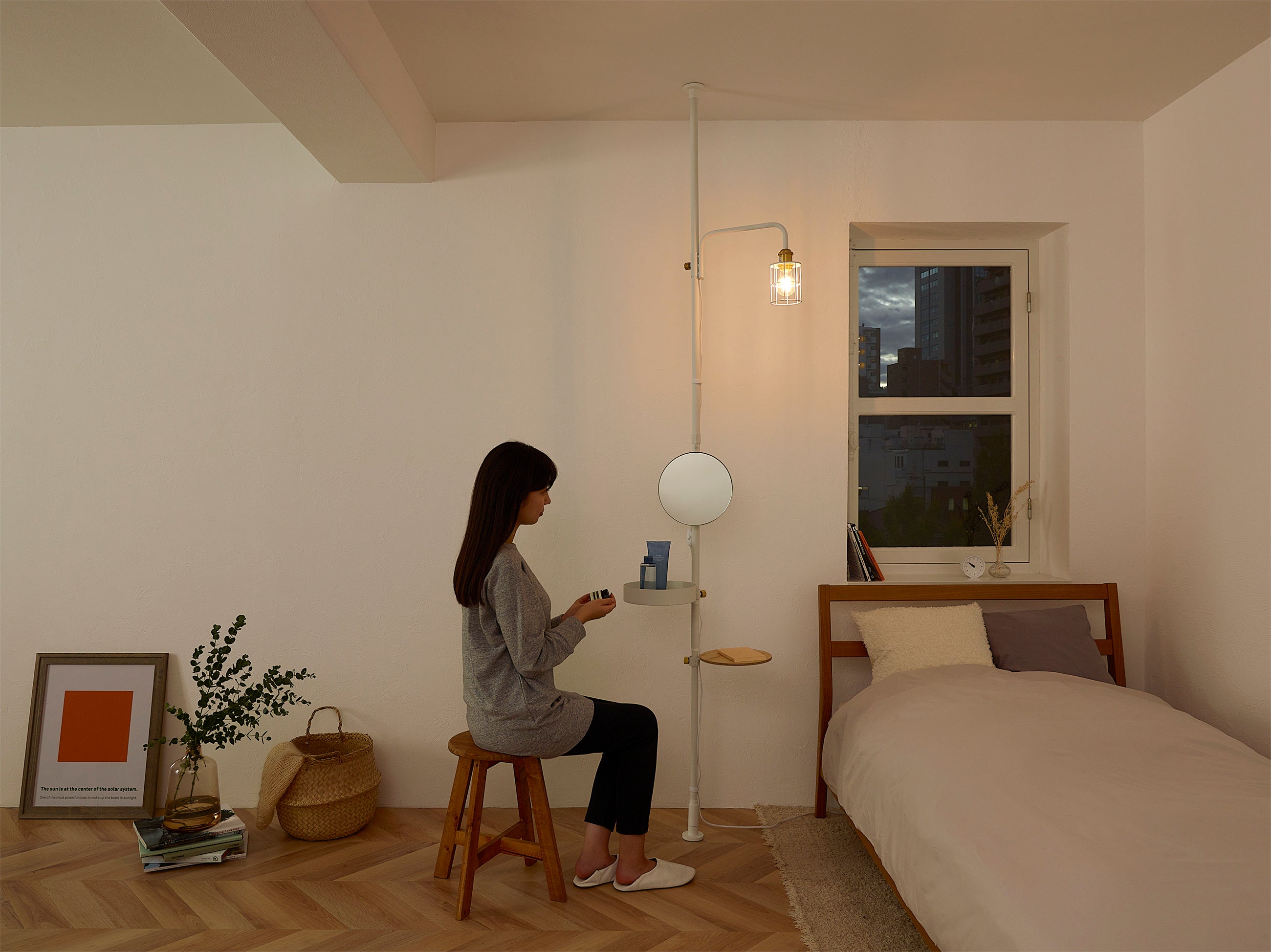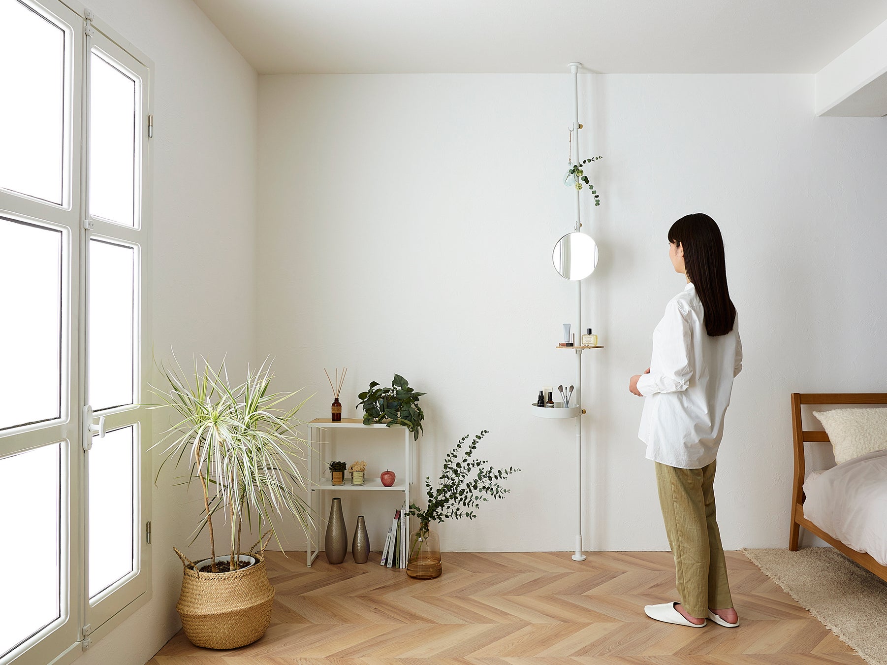 窓付近に設置すれば、自然光のもとでメイクができます。Mirrorの高さも好みの位置にセットできます。