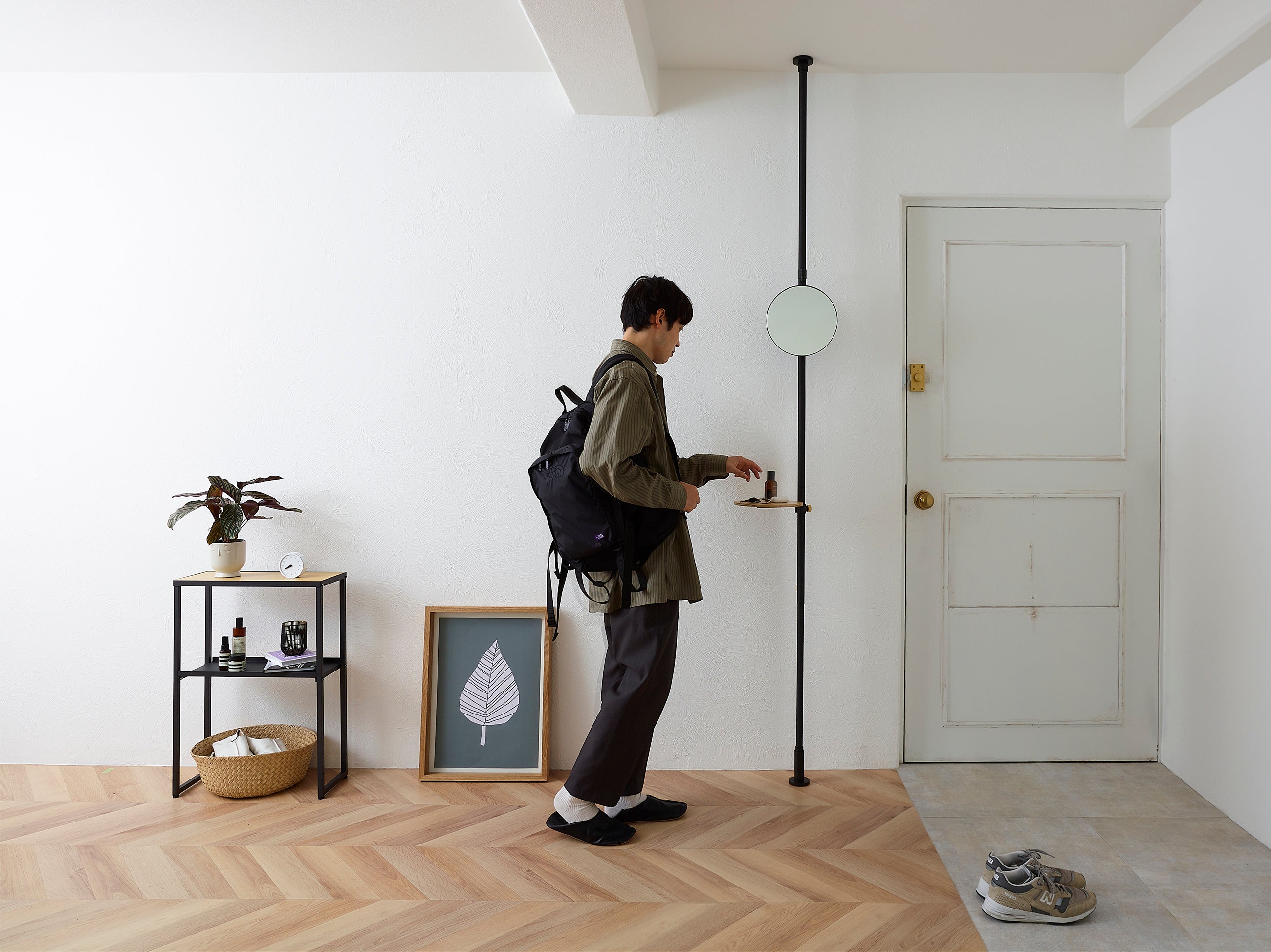 玄関前に設置すれば、お出かけ前に身だしなみを整えることができます。Tableには毎日使う小物を置くことで、お出かけもスムーズに。