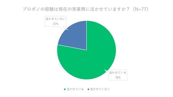 プロボノ参加者の7割以上が実務に活かせていると回答 自身のキャリアへの考え方へ影響した方は8割にのぼる