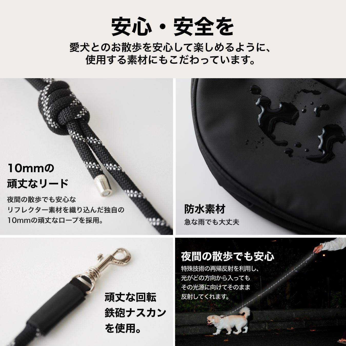 リードとバッグが一体化した、他にはないスマートなデザイン。手ぶら感覚で身軽にお散歩が楽しめます。