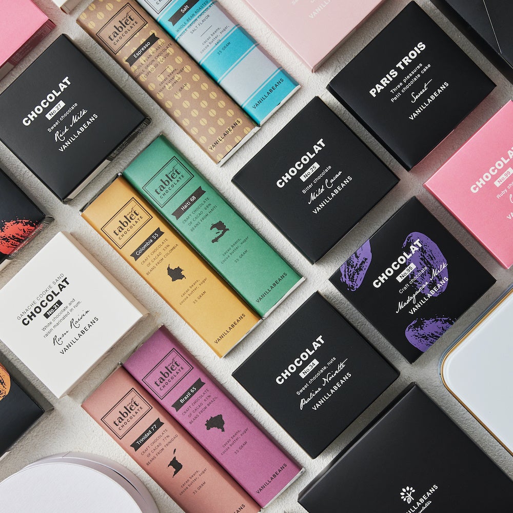 世界各国から取り寄せたカカオ豆を使い、焙煎からこだわるVANILLABEANSの板チョコレート「タブレットショコラ」は、2014年からこれまで実店舗を中心に販売を行ってまいりましたが、公式サイトリニューアルに伴い、オンラインショップでも店内と同じく1枚ずつご購入が可能となりました。タブレットショコラは常時20種類以上のラインナップ、「BITTER」「SWEET」「FRUITY」「FLORAL」「NUTTY」のフレーバータイプ別でもご覧いただけます。横浜で作るクラフトチョコレートを、心を込めて日本各地へお届けします。
