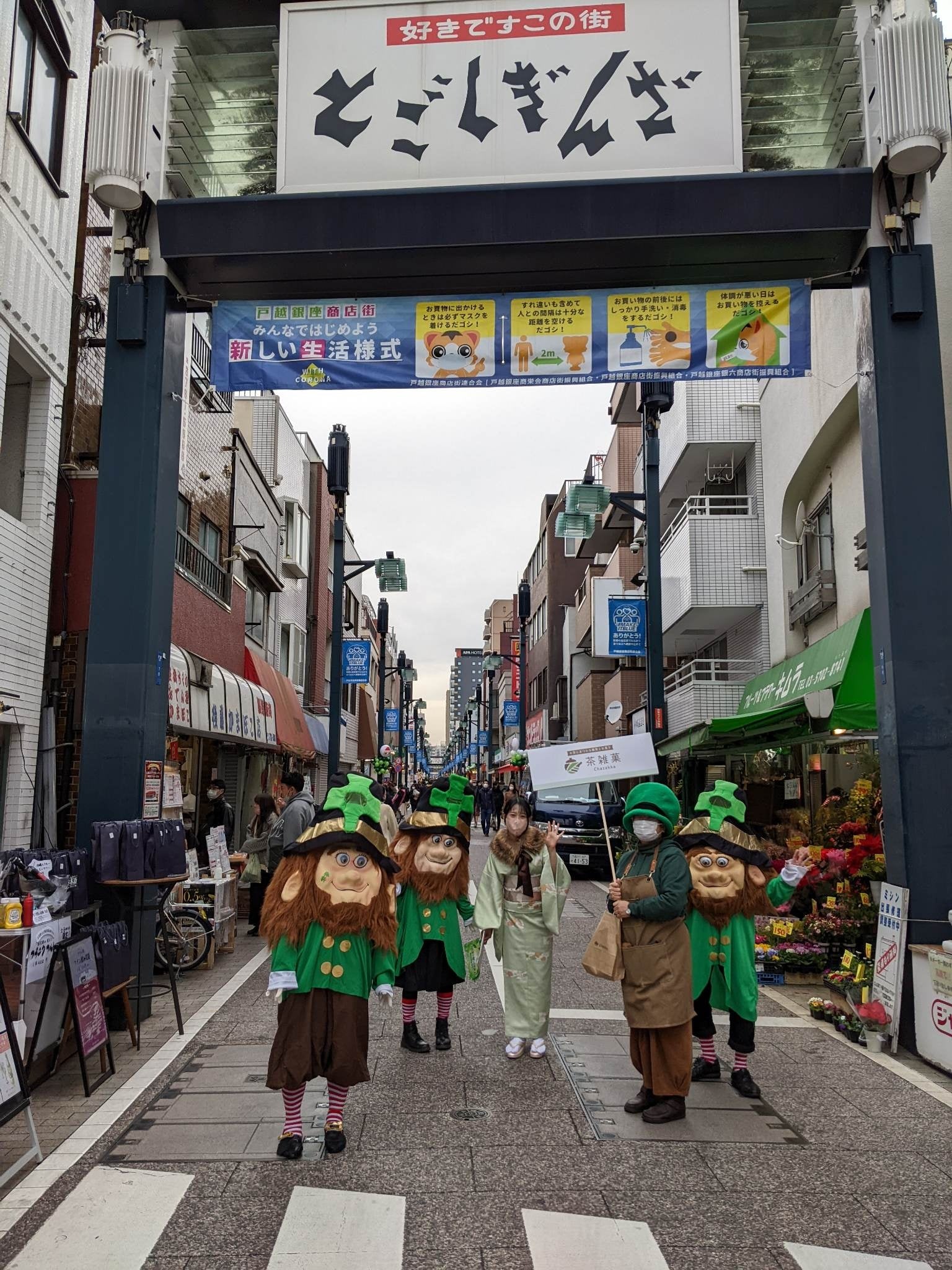 アイルランドの妖精・レプラコーンと一緒に戸越銀座をパレードします。15:30ごろ茶雑菓店頭より出発