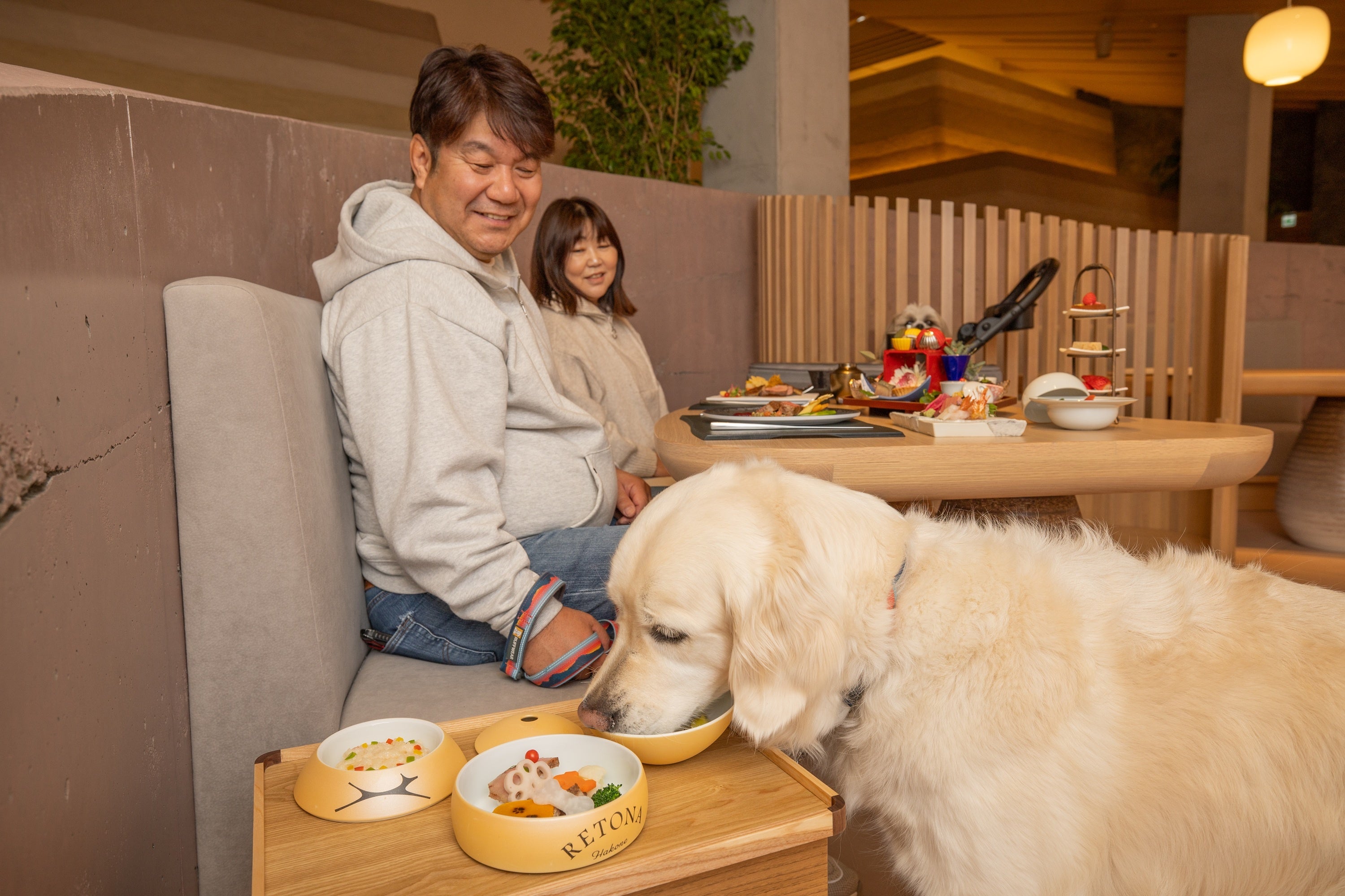 夕食・朝食ともにペット栄養管理士の資格を持つ料理長が手がける特別なメニューをご提供し、愛犬とご家族が同じテーブルで食事を愉しむ贅沢を叶えます。