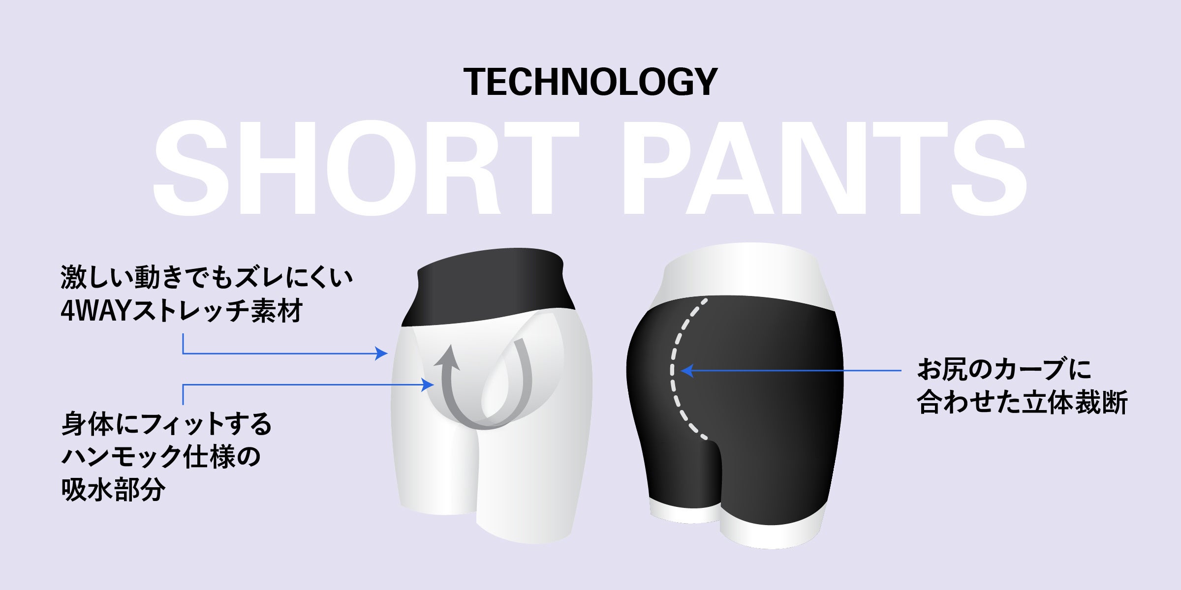 あらゆるスポーツシーンに合わせてお使いいただけるよう2タイプのショーツをご用意しました。また、カラーは全部で3色展開。プレースタイルや利用シーンに合わせ、カラーもお選びいただけます。