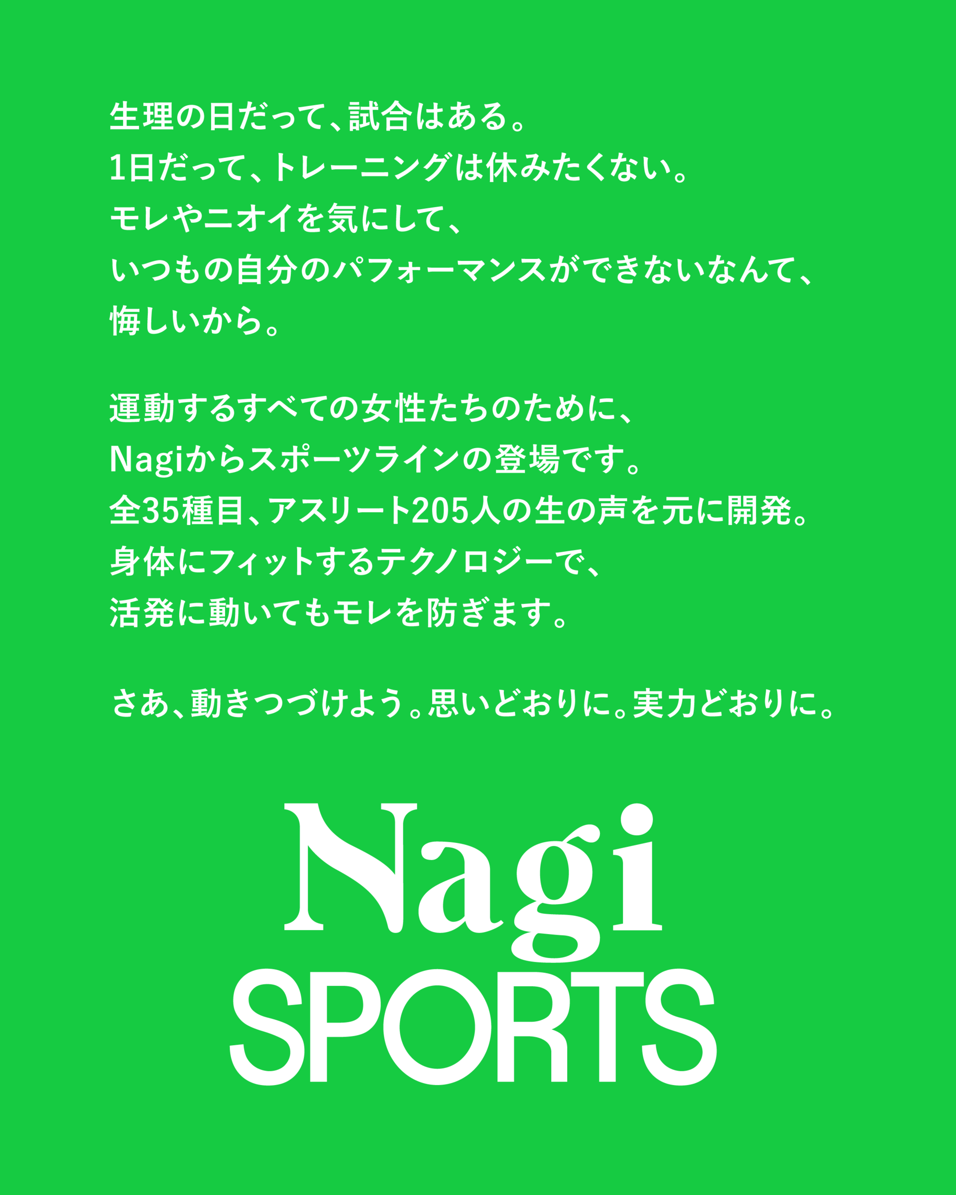フェムテックブランド Nagi(ナギ)から、運動するすべての女性たちに向けたスポーツラインNagi SPORTS(ナギ スポーツ)が新登場