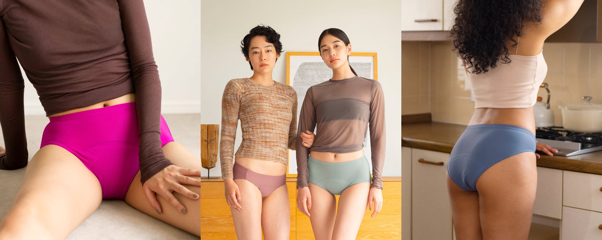 Nagiは、わたしたちの身体ともっとうまく付き合うために生まれた、1枚でも過ごせる吸水ショーツです。吸水機能や防水機能に加え、防臭機能、制菌効果(菌を減らす効果)のある機能素材を使用しています。防水布を折り返す独自の積層構造は、特許出願中です。ブランド開始から約1年間で5万枚超のショーツをみなさまにお届けしてきました。