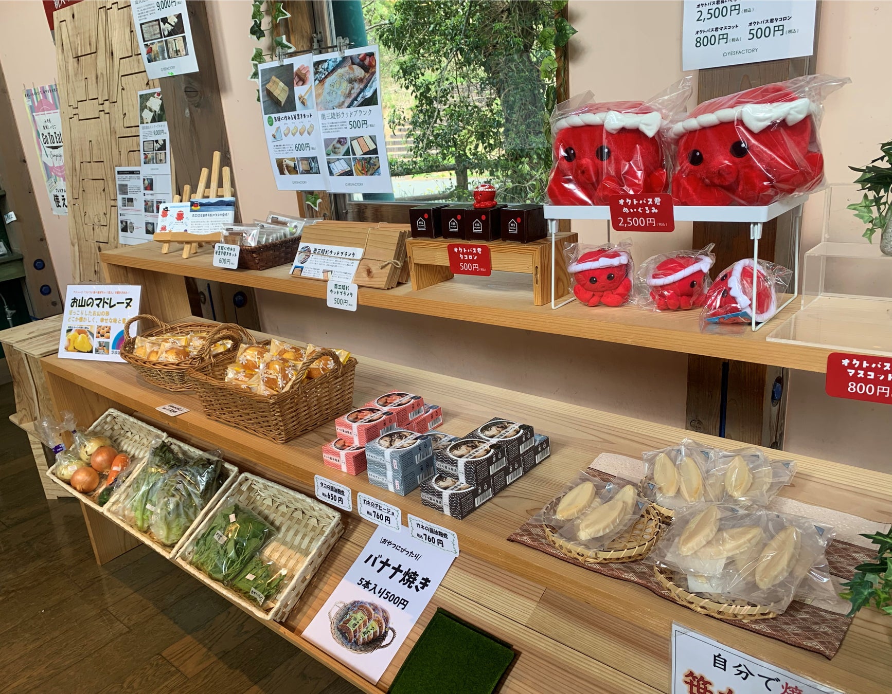 ・自分で焼く地元蒲鉾屋の笹かま3枚セット・・・500円 ・地元名菓「バナナ焼き」500円