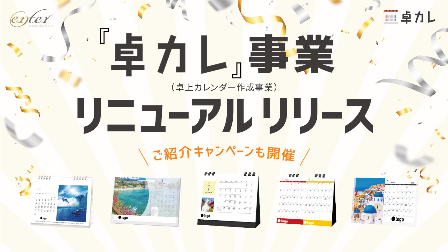 エンライズグループのWEB事業を担う株式会社エンター(本社:東京都新宿区、代表取締役:石田浩一、以下「当社」)は、2024年8月6日付でソフトコミュニケーションズ株式会社より譲り受けた「卓カレ事業」(卓上カレンダー作成事業)をリニューアルし、2025年10月より正式にサービスを開始いたします。