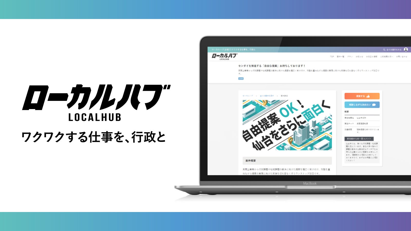 など行政とお仕事するにあたって利用価値が高い情報を、わかりやすくキャッチし、行政とコミュニケーションが取れるプラットフォームです。