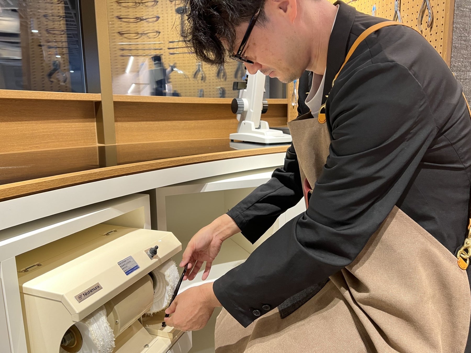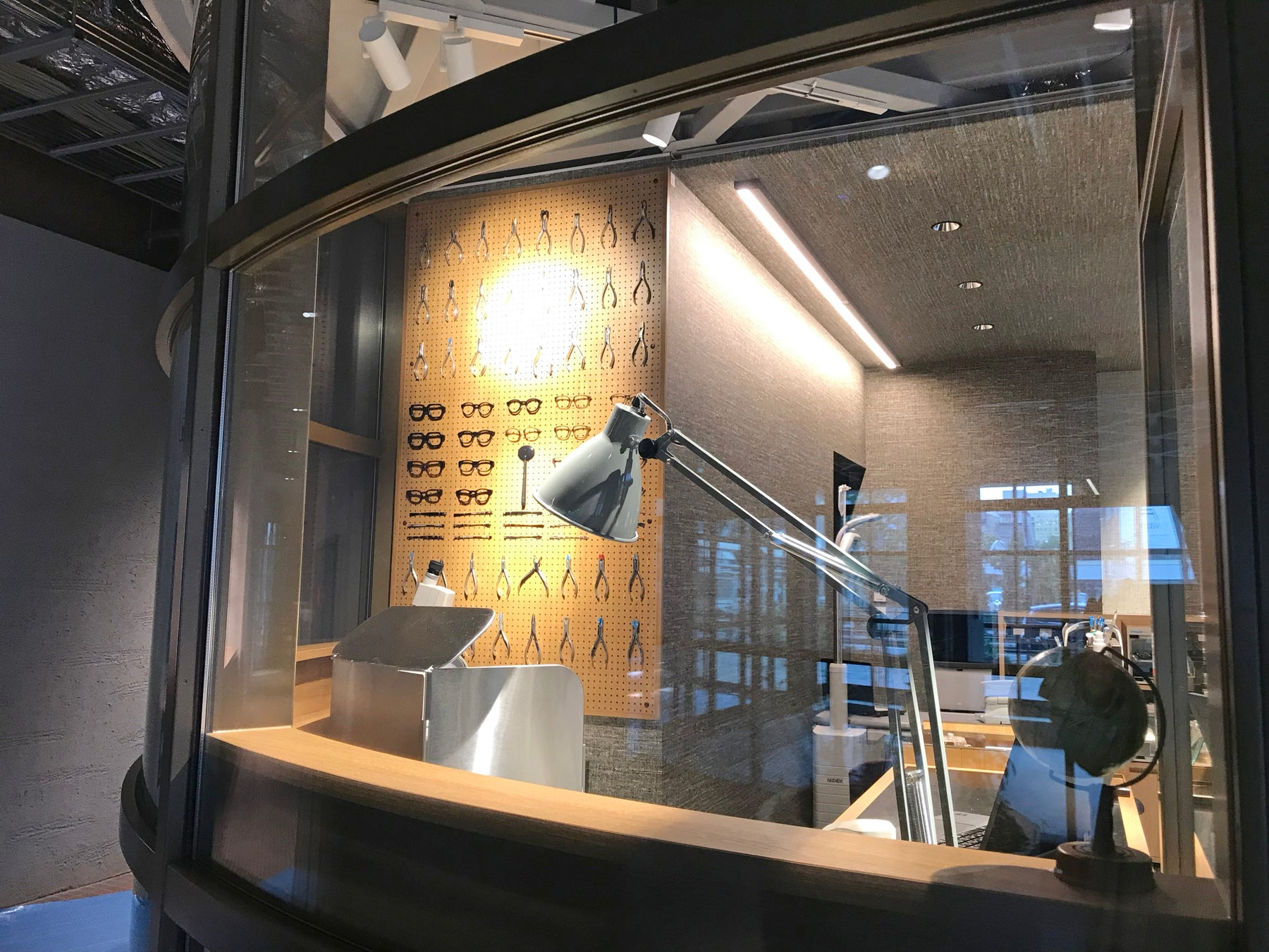 店の外から、プロの修理・メンテの技が見える「メガネマスターズ アトリエ」