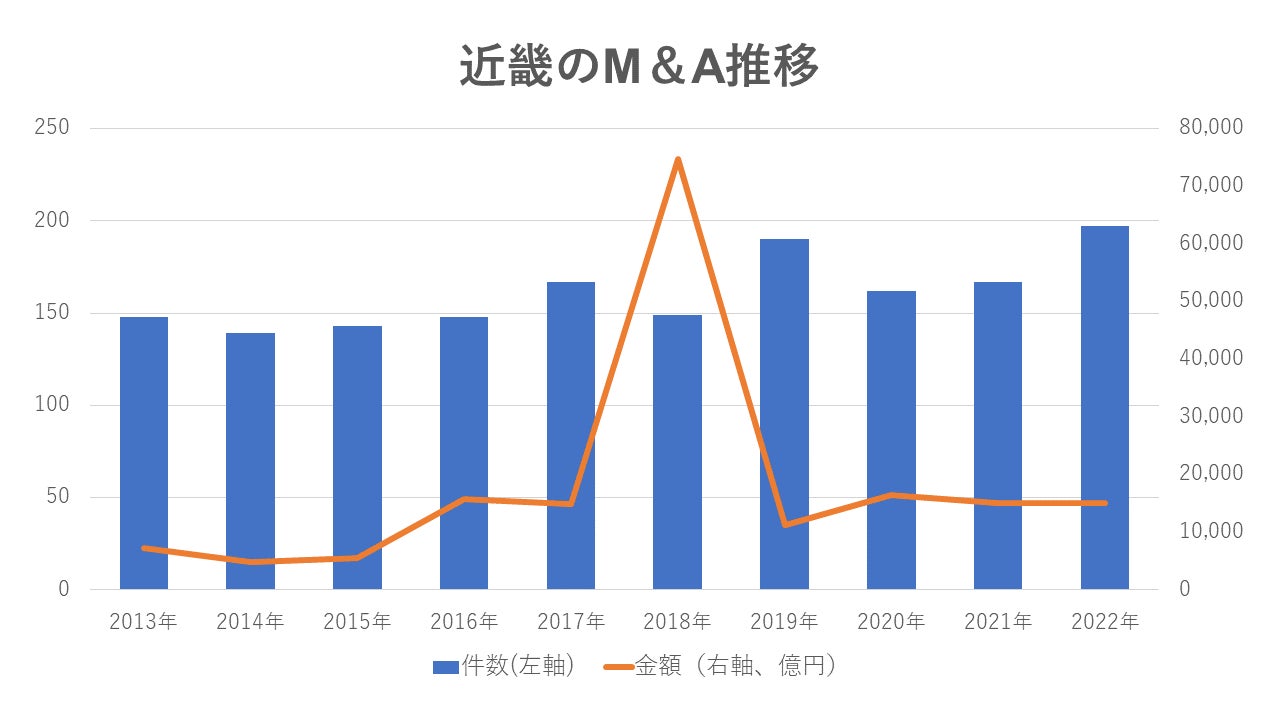 【M&Aレポート】2022年近畿地方のM&A件数197件(+30件)コロナ禍前を上回り、過去最高を更新