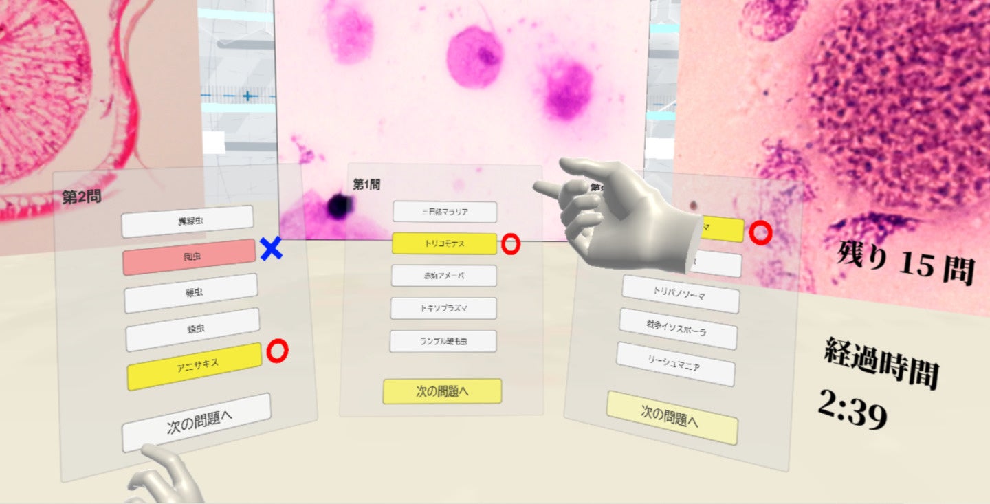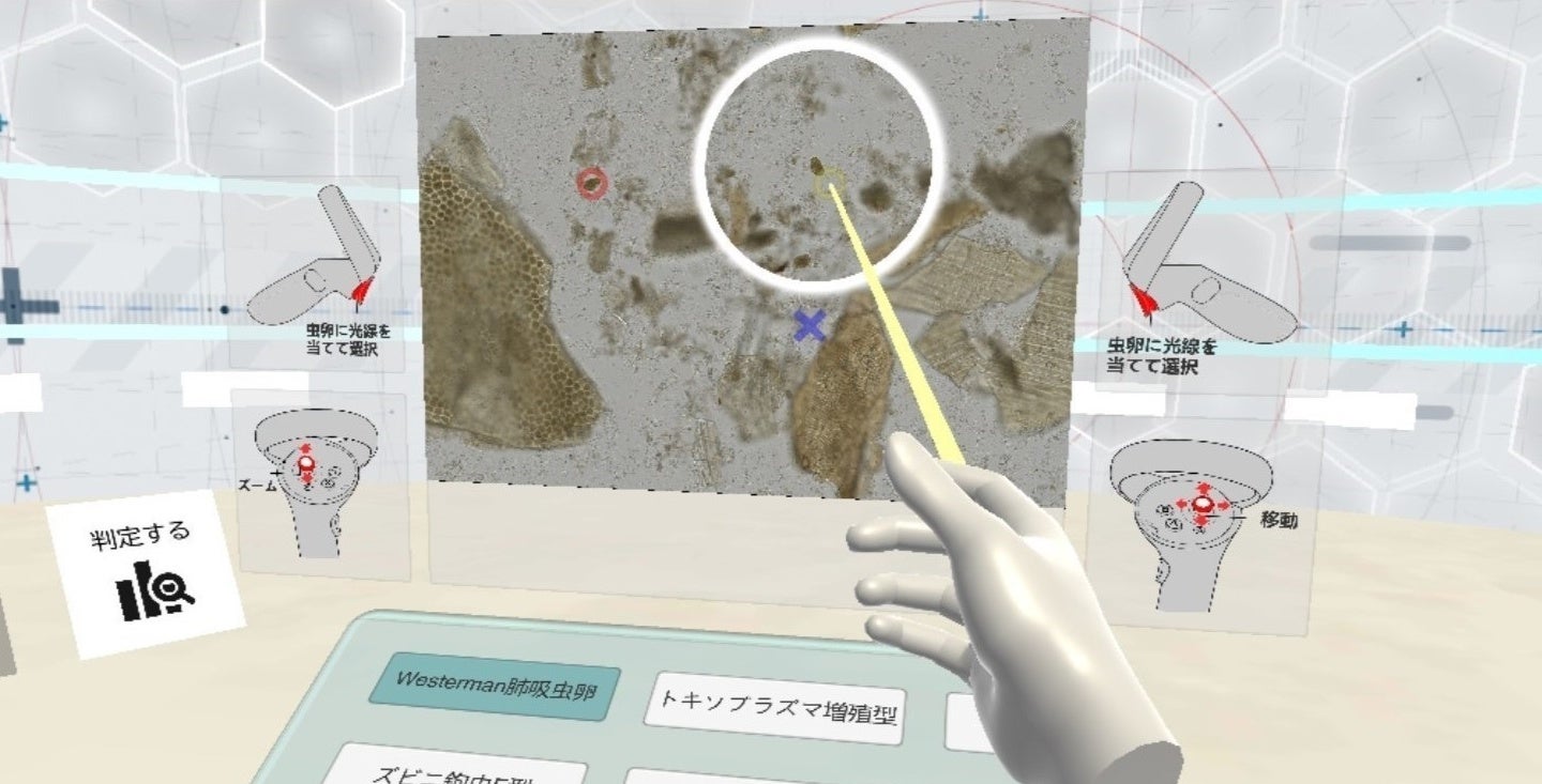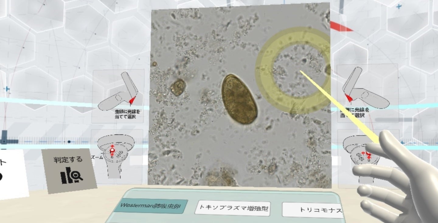 顕微鏡データを使って検体内の寄生虫や寄生虫卵を目視確認する実習をバーチャル上でできるようにしたトレーニングです。