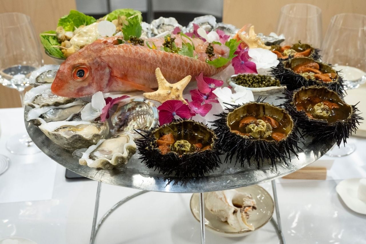 今年で第4回目となる、食とのペアリングを評価するアリアンス ガストロノミー賞(特別賞)は、魚介類のMOF*称号を持つソニア・ビシェ (Sonia Bichet) 氏が準備した魚介類の盛り合わせと、決勝に進出した大吟醸酒5本との相性(マリアージュ)をもとに選ばれました。審査員長から指名された審査員が評価を行い、その中で特に相性が優れていると判断された1本の大吟醸酒が、受賞酒として選出されました。