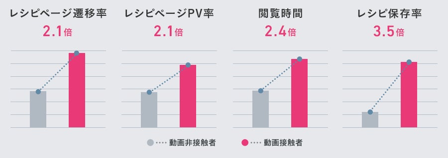 「レシピページへの遷移率(CVR)」が約2.1倍優位となり、「レシピ保存率」は約3.5倍に!