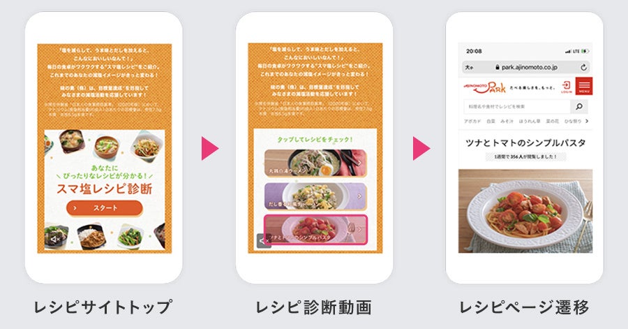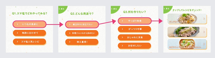 ●『あなたにピッタリなレシピが分かる!スマ塩レシピ診断』というタイトルの診断型動画を制作。診断結果から、各レシピページへユーザーを誘導。
