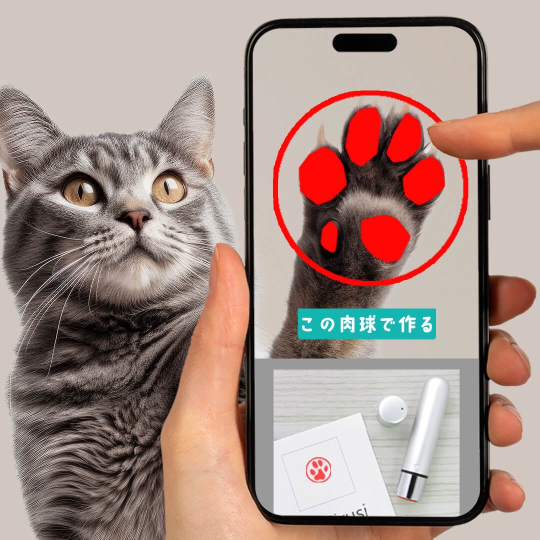 「にきゅ印」は、スマートフォンで撮影したペットの肉球を、スタンプデータに変換し、愛犬や愛猫のユニークな足跡を、楽しいハンコやスタンプに変えることができる新しいサービスです。