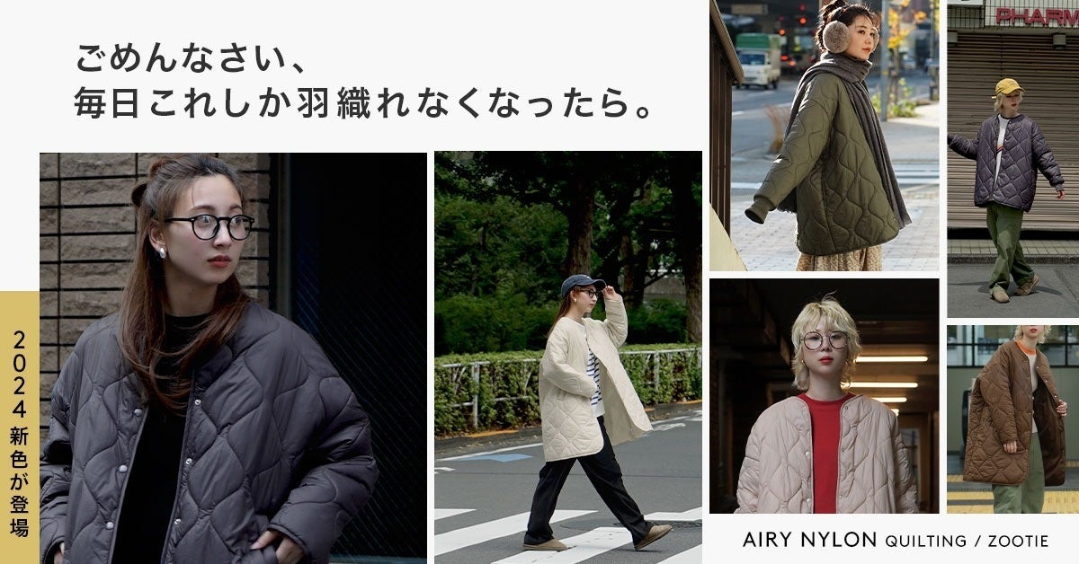 最新トレンドを押さえたおしゃれで機能的な洋服の企画開発・販売を行う有限会社ズーティー(本社:兵庫県神戸市、代表取締役:今石雄介)はこのたびオリジナルブランド「zootie」より、2023年の販売開始から1年足らずで10万枚を販売した、軽くて暖かな万能キルティングアウター「エアリーナイロンキルティングアウター」に新色を加え販売を開始しました。