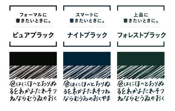 新商品の「ボールサインiD 3C」は、シリーズ初の3色ボールペンとなります。インキ色は基本の黒・青・赤の組合せだけではなく、ナイトブラック、フォレストブラックのような個性的な黒を採用した商品もラインアップし、“いつもの黒”と“自分の黒”を使い分けていただくことができます。