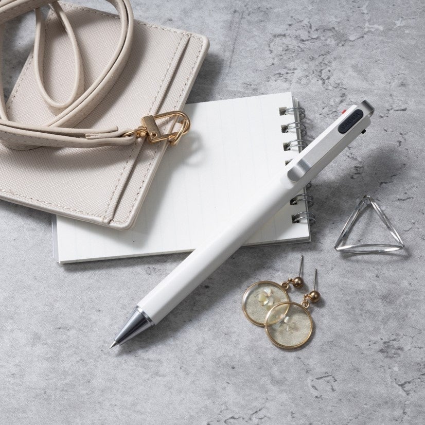 ボディは六角形と丸形を組み合わせた特別な形状で、自然と手にフィットするiD設計を継承し、金属製クリップとペン先を採用、上質感溢れるスタイリッシュなデザインとなっています。またスライダーは全体のデザインにマッチしたミニマルな形状で、小さくても操作しやすいエラストマー製です。ボディ色はブラックとホワイトの2色、インキ組み合わせは3パターンの全6種のラインアップで発売いたします。