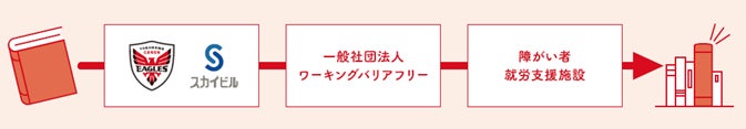 昨シーズンより継続している本プロジェクトは、各家庭で役割を終えた本を回収して、一般社団法人ワーキングバリアフリー(所在地:東京都千代田区、代表理事:島田博之)に寄付します。同法人では、回収した本を障がい者就業継続支援施設で仕分け・検品・梱包・発送作業を行い、中古市場に再流通させます。売上の一部が当該施設に還元され、障がいをお持ちの方々の雇用創出と自立支援につながる取組みです。