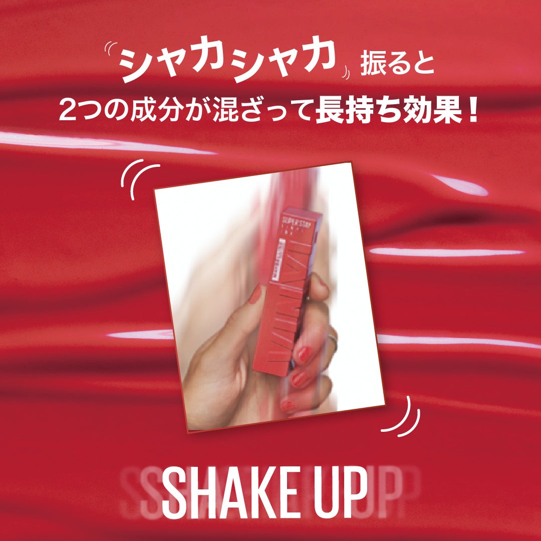 今年の秋は、シャカシャカ振ってサッとひと塗り。#落ちないリップ(*2) で色落ち・ツヤ落ちを気にせず、食にスポーツに行楽に、めいっぱいお楽しみください!