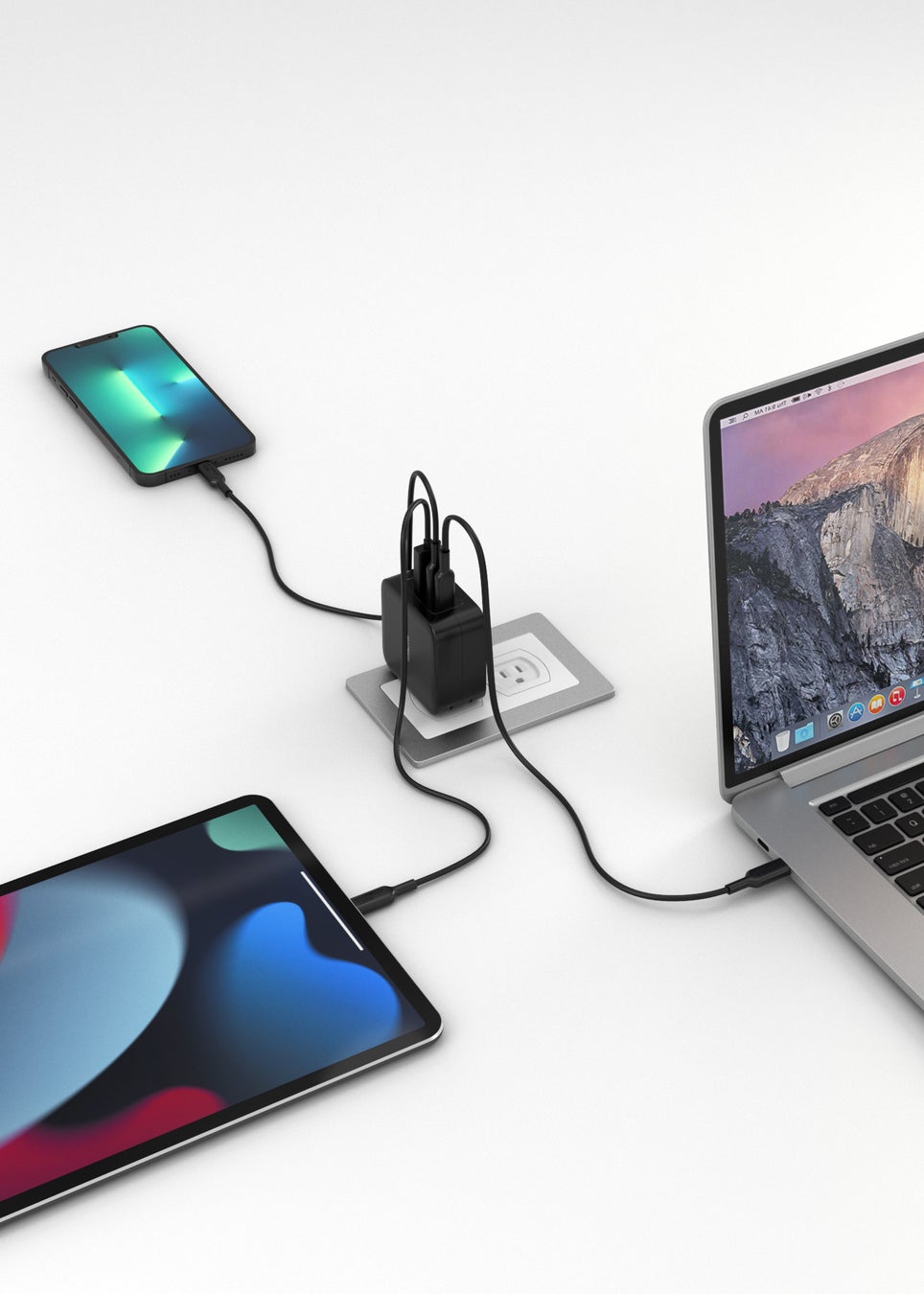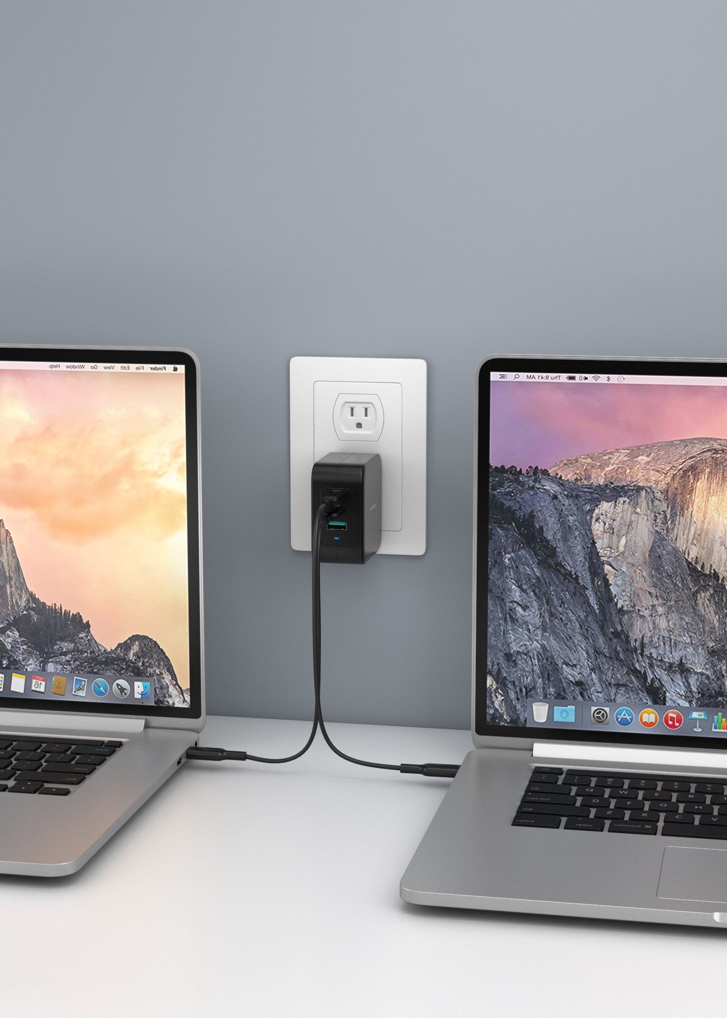 USB Power Delivery(PD)対応の合計最大100Wの高出力でノートPCからスマートフォンまで幅広い機器に急速充電できます。※本製品には、100Wケーブル2Mが付属しています。