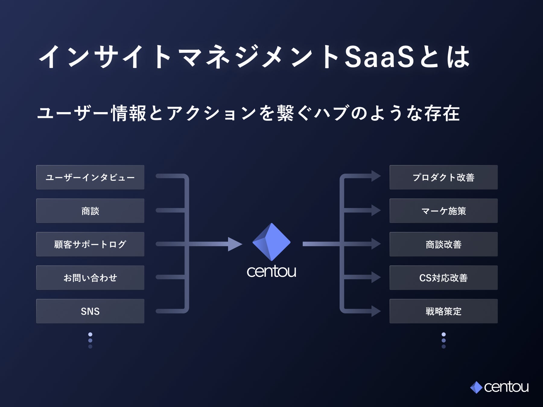 インサイトマネジメントSaaS「Centou」は、ユーザー起点の事業成長を支えるツールです。