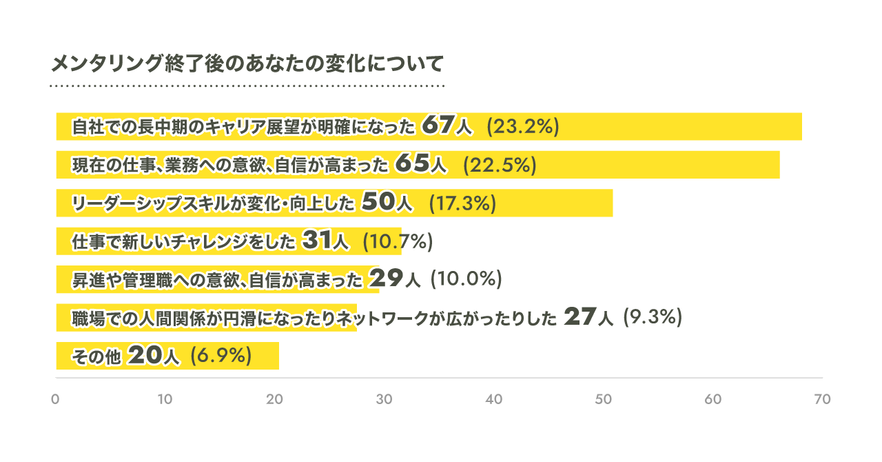 調査対象者:Mentor Forの社外メンタープログラム終了後、3ヶ月以上が経過したメンティ(女性社員)