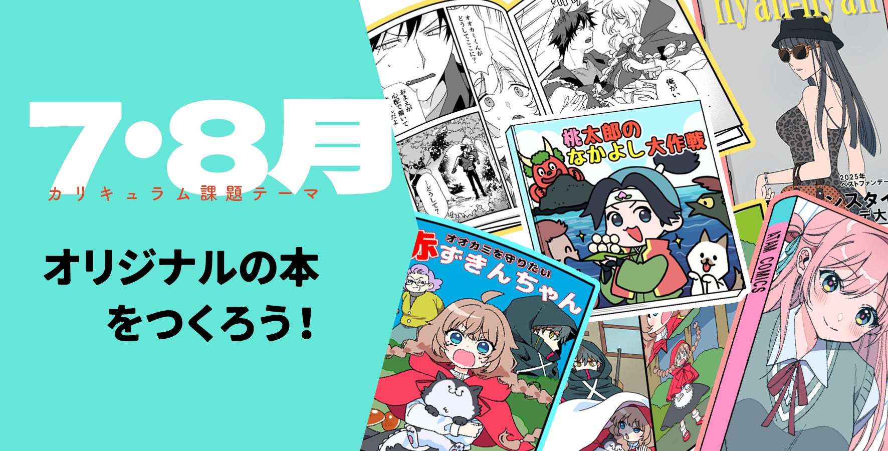 2025年7・8月のカリキュラムでは、絵本やマンガ本のイラストやストーリーを考えて実際に印刷し、自分だけのオリジナル本を作ります。