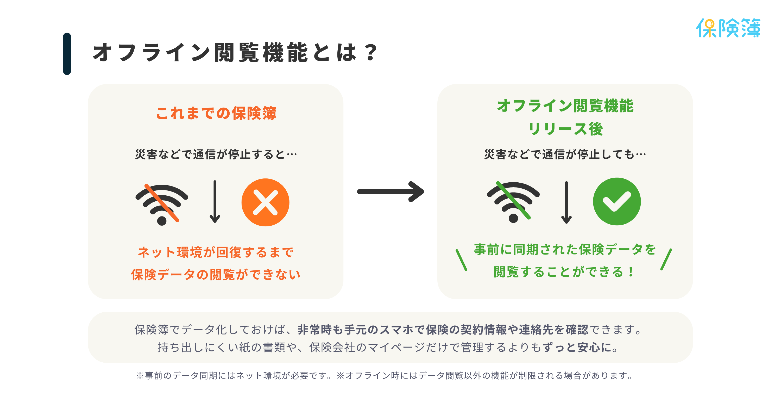 災害時も通信環境によらず保険情報へアクセス可能に。保険管理アプリ「保険簿」オフライン閲覧機能をリリース