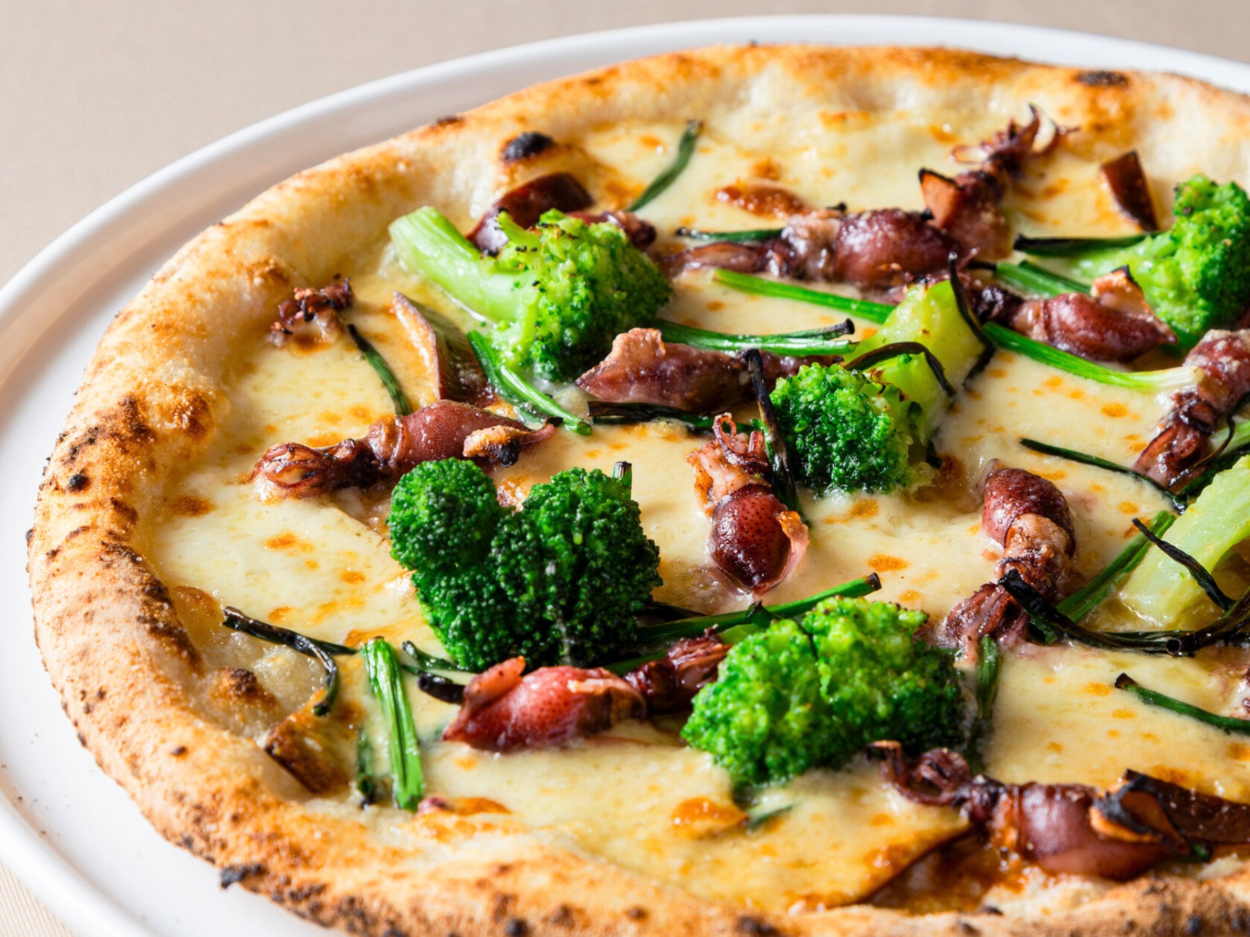 葱の香りでまとめた、お酒にも合う贅沢なピッツァです。