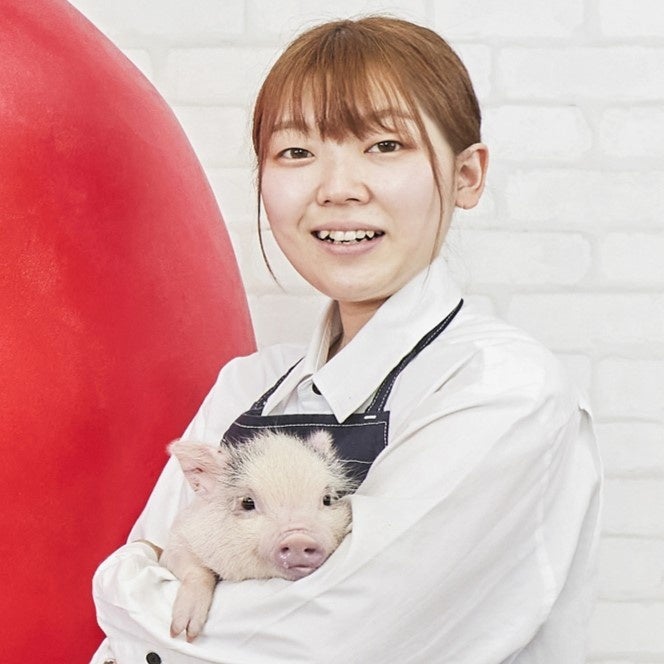 2019年、大阪ECO動物海洋専門学校卒業後、岩手サファリパークを経て、2020年9月、mipig cafe 大阪店の立上げメンバーとして参画。大阪店店舗責任者、札幌発寒店の立上げ後、関西エリアマネージャーに。ブタさんのトレーニングを得意とする。