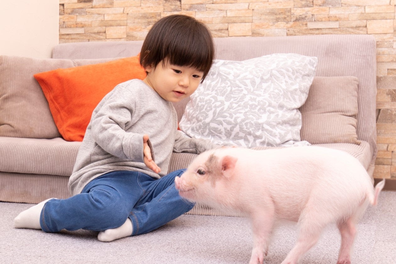 国内のマイクロブタファーム“mipig farm”で生まれたマイクロブタさんは、“mipig cafe”で、ペットとして人間社会で生活する上で重要な「社会性」を身につけたのち、オーナー様のもとへ家族としてお引渡し。お引渡し後も、アプリを通して専門スタッフがサポートいたします。
