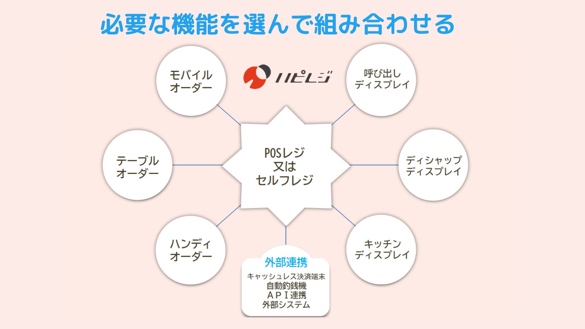 ■使いやすいセルフレジ・POSレジの機能に加え、モバイルオーダーやテーブルトップオーダー、キッチンディスプレイ、現金自動釣銭機など幅広い機能を追加することができるので飲食店・リゾート施設などでは、レジとしてだけでなく、店舗DXの切り口として幅広く導入いただいています。
